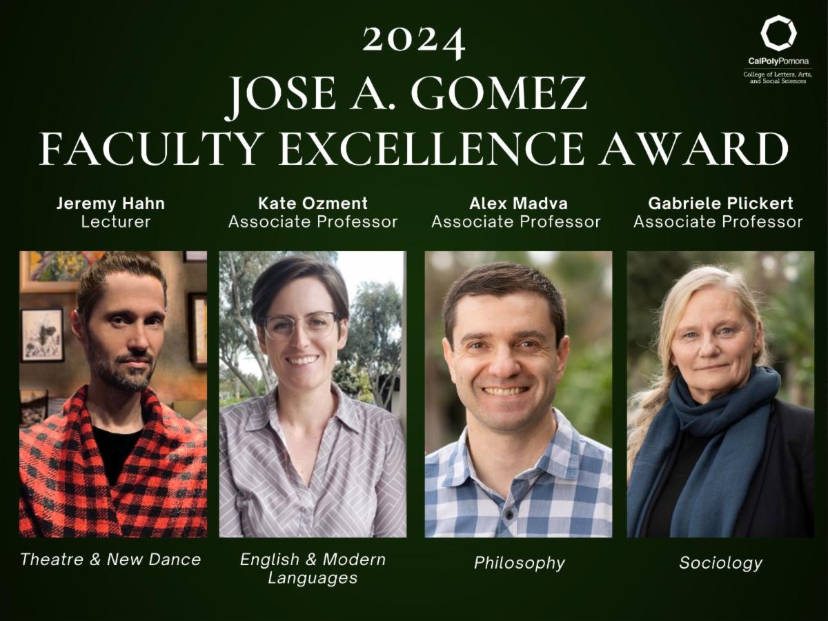 José A. Gómez (’93, Sociology) established a fund to honor faculty who have made significant contributions to student success in the College of Letters, Arts, and Social Sciences. Each of the four recipients of the Jose A. Gómez CLASS Faculty Excellence Award will receive a $1,000 stipend in recognition of their teaching, research, creative endeavors, service, advising, mentoring, and collaboration.