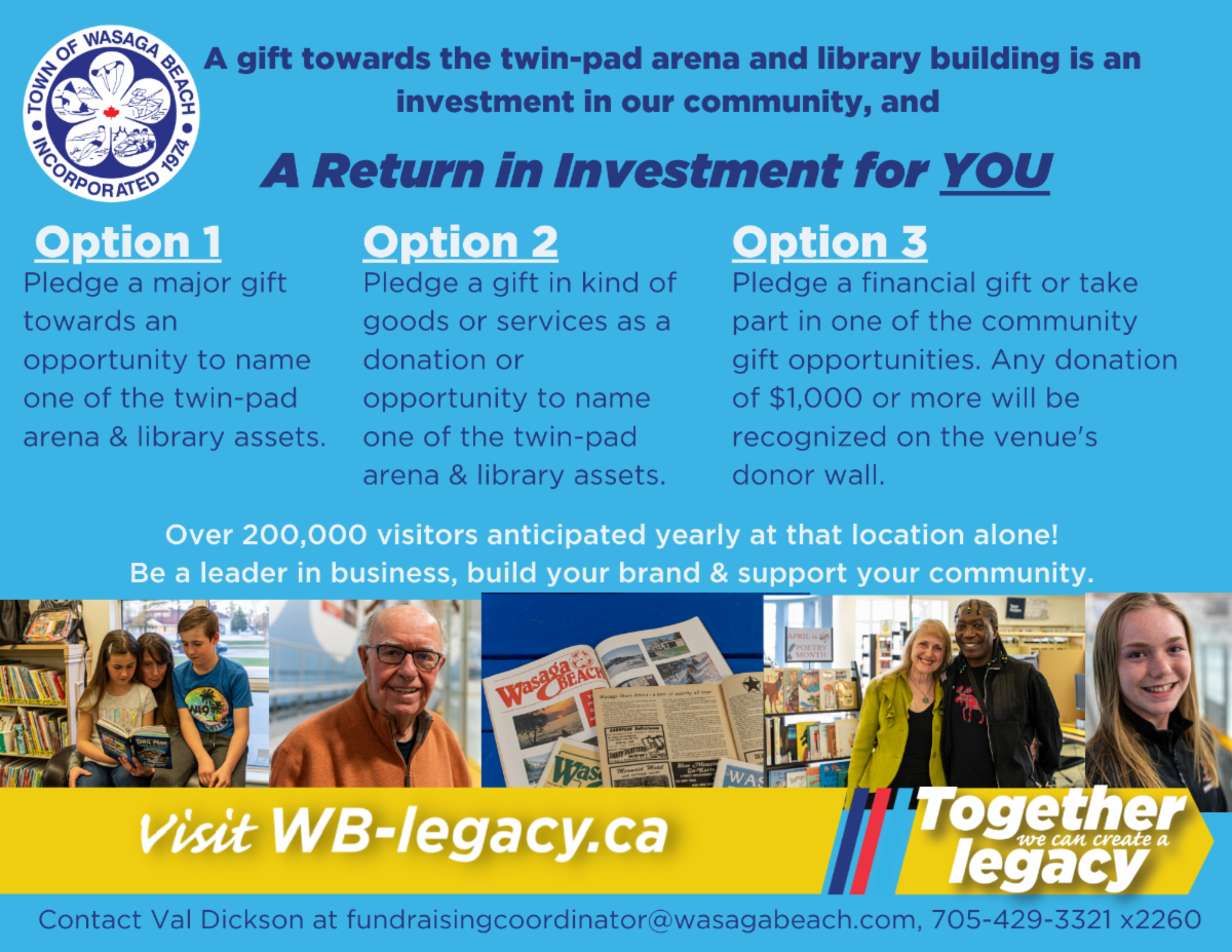 *Disclaimer: The Town of Wasaga Beach is unable to provide any warranty regarding the accuracy or completeness of third-party submissions. Distribution of these items does not imply an endorsement of the views, information or services mentioned. |