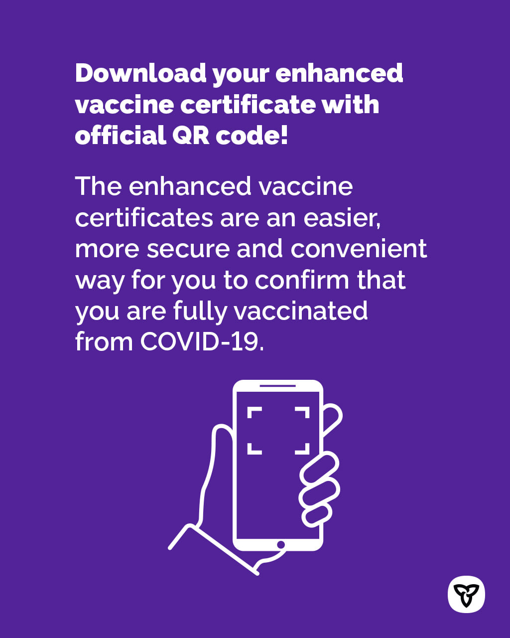 As of January 4, 2022, Ontarians will now be required to use their enhanced vaccine certificate with a QR code to access certain businesses and organizations where proof of vaccination is already required. Vaccine receipts without a QR code will no longer be accepted as valid proof of vaccination.