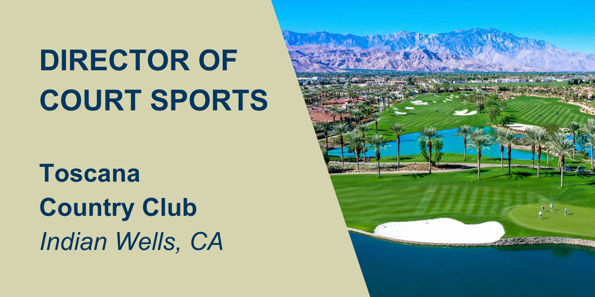 Toscana Country Club is seeking a Director of Court Sports, responsible for all of Toscana Country Club’s Racquet operations including the tennis and pickleball programming and staff.