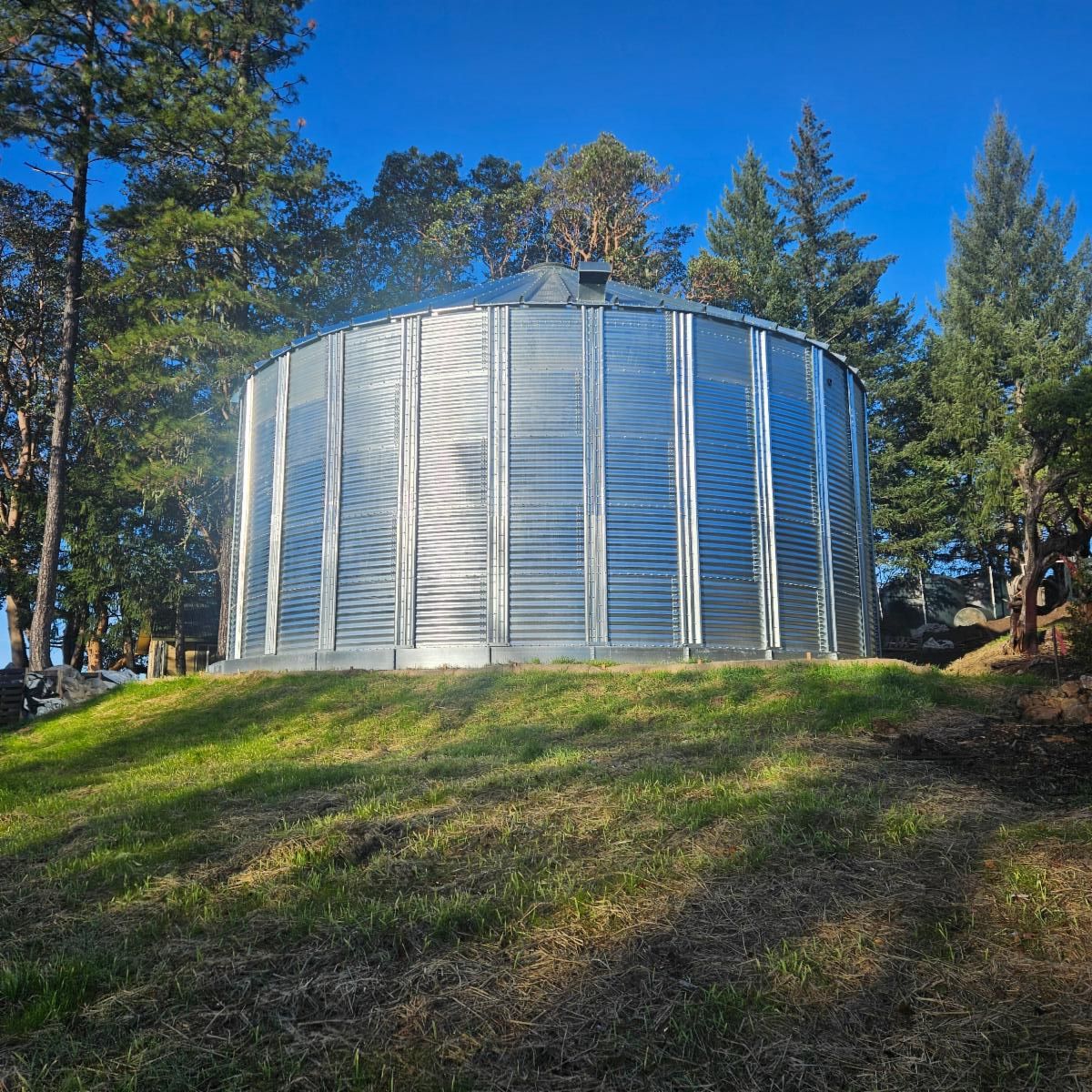 Water storage tank construction began up on Bell Springs Road, as part of a water conservation project for cannabis farmers through the California Department of Fish and Wildlife's Cannabis Restoration Grants Program. The pictured tank will hold up to 120,000 gallons.