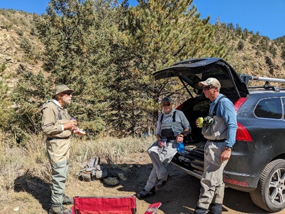 The sun peeked over the rugged cliffs, casting a golden glow on the emerald waters of the Green River at Flaming Gorge. It was that time of year again—the annual fishing trip that our chapter eagerly awaited. Our group consisted of the usual suspects plus five newcomers this year! We shared stories, laughter, and the occasional tall fish tale. The camaraderie was as essential as the fishing itself. This year, however, held something extra special: Tom’s 78th birthday celebration with the most delicious chocolate birthday cake made by Jerry’s wife.