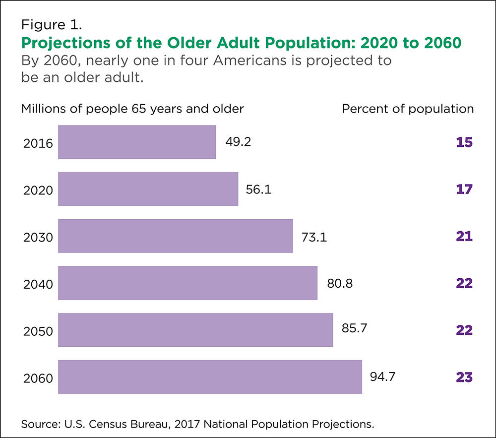 From a Public Health perspective, here’s the United States Census Bureau’s view on Demographic Turning Points: Population trends 2020-2060. Note that, by 2030, 73.1 million people (21%) will be 65 or more years old.