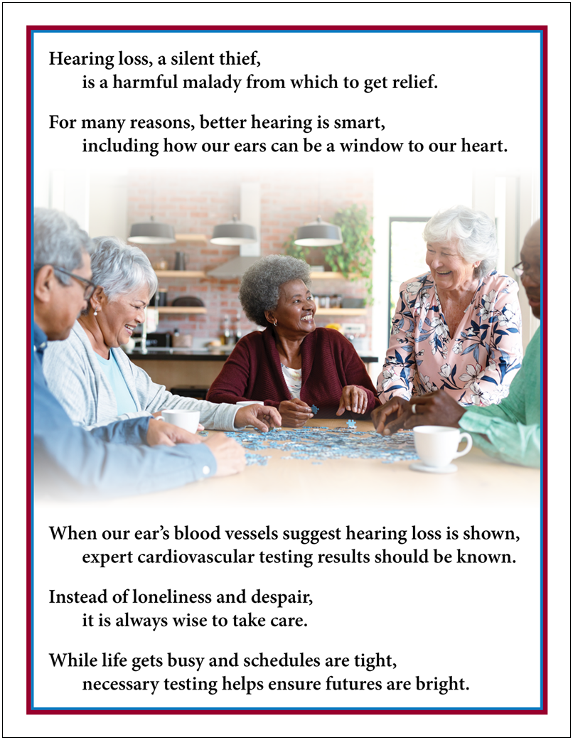 | Importantly, did you know some types of hearing loss should be considered risk factors which can be systemically associated with heart disease and strokes? Research indicates your inner ear’s sensitivity to blood flow, as well as vessel trauma, may enable hearing loss to be an early indicator of and screening test for heart problems. While few are in the know, most are surprised to learn. | | |