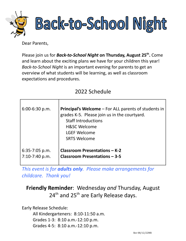 I look forward to seeing you tomorrow at Back-to-School Night. Please reference the schedule below.