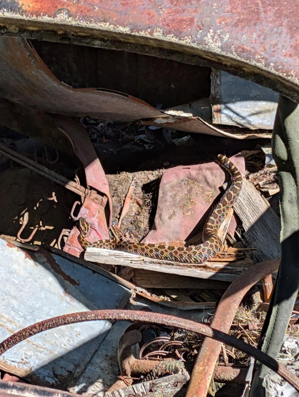 Leah, who has a special interest in herpetofauna and worked nearby, offered to monitor the site regularly. She connected with local herpetologists, and within months it was confirmed: three gravid (pregnant) females were gestating there. They were frequently observed basking on wood piles and even inside the rusted Volkswagen.