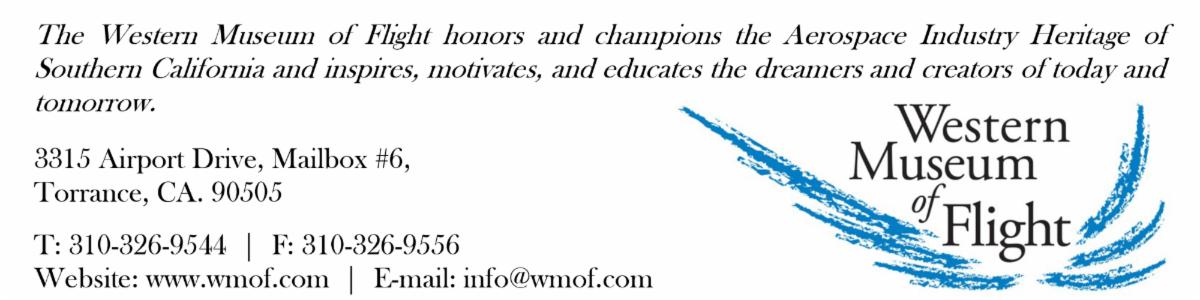 The Western Museum of Flight is recruiting volunteer docents! If you live in the South Bay and would like to volunteer at the museum on a regular basis, please email info@wmof.com. We will get right back to you. |