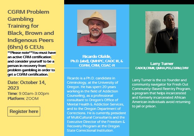CGRM Capacitación en adicción al juego para individuos afroamericanos (6hrs) 6 CEUs **Espacio de afinidad para afroamericanos**