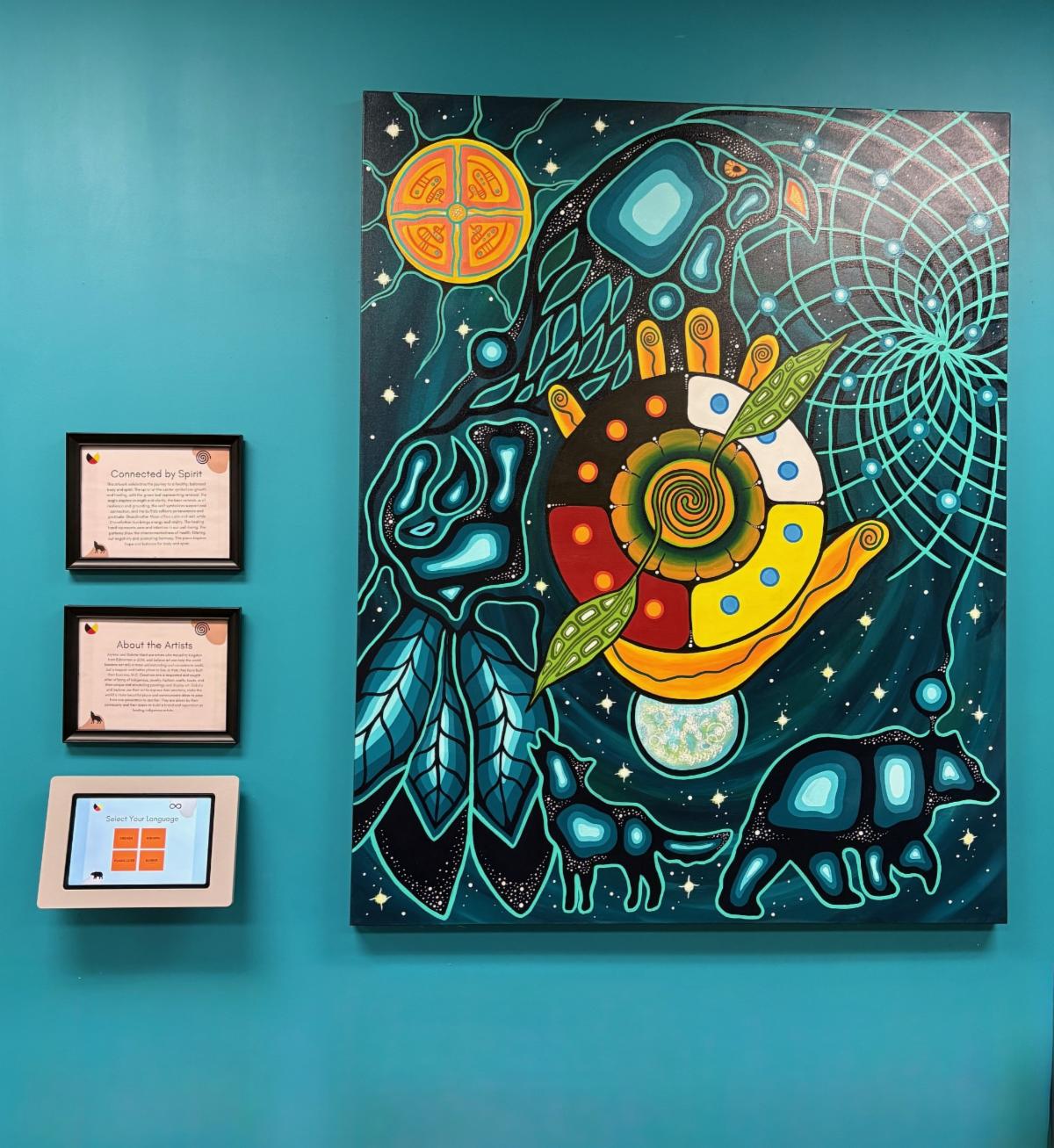 The painting was created by artists Jaylene Cardinal and Dakota Ward of W.C. Creatives as part of Indigenous Health & Wellness Strategic Advancement in KFLA. For the artists, this work is about more than that art itself – it’s about what people carry with them when they leave.