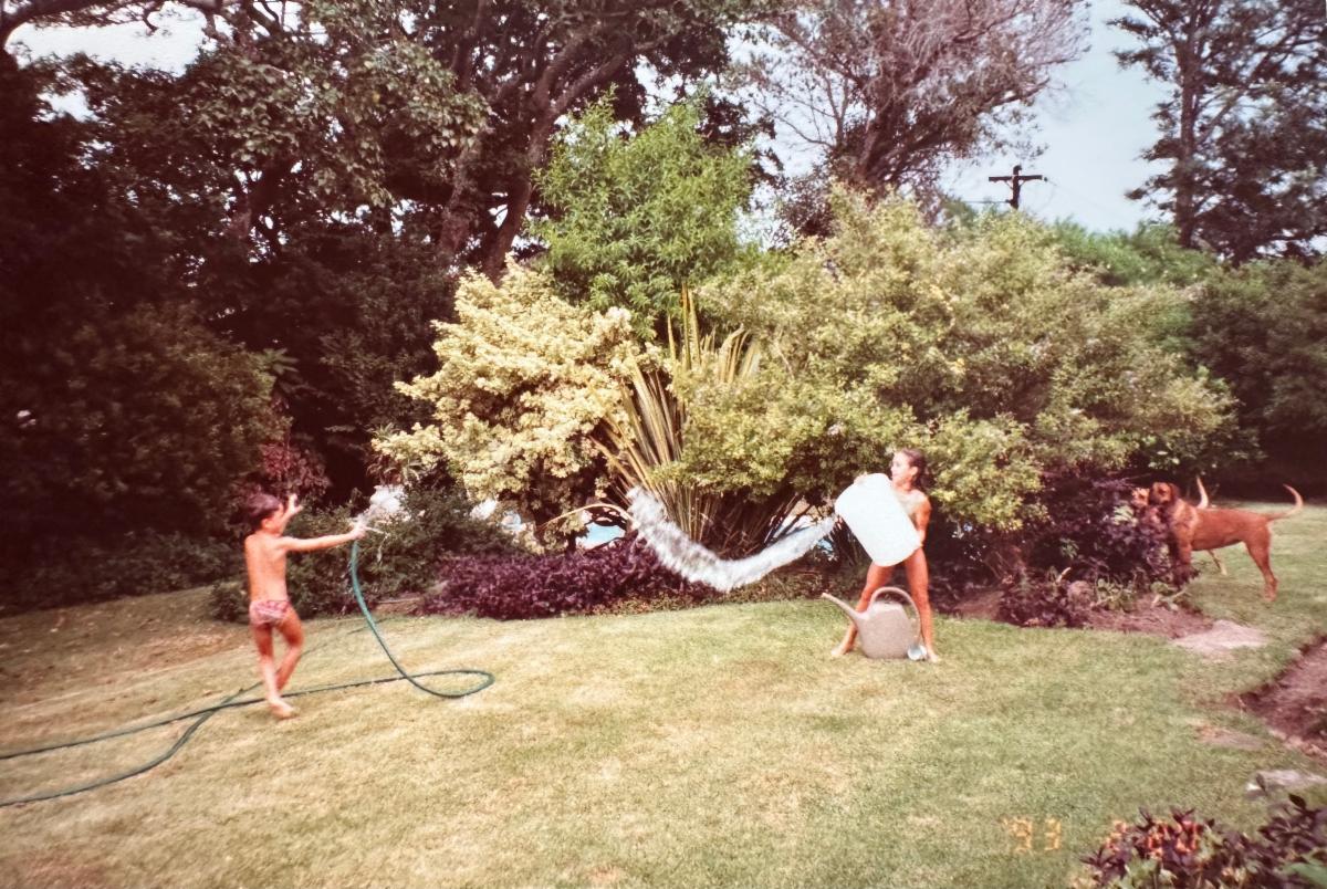 Bryony Walter (pronounced like “Brian-knee”) is originally from South Africa and had two Rhodesian Ridgebacks growing up! Cassie and Amber can be seen standing watch above while Bryony was playing with her brother.