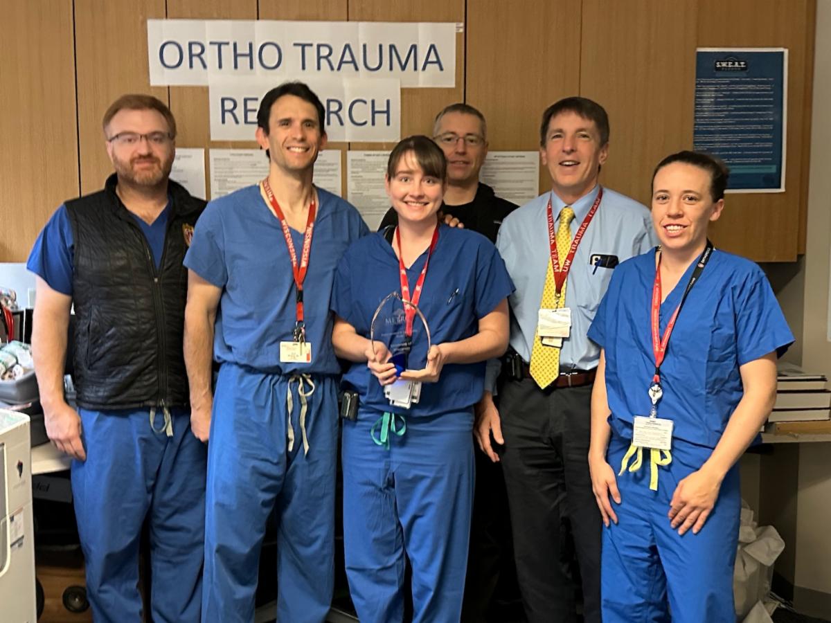 Earlier this fall, the University of Wisconsin School of Medicine and Public Health's orthopedic trauma research team, led by Paul Whiting, MD, received the Major Extremity Trauma Research Consortium (METRC) "Implementation and Data Quality All-Star Award." The award was announced and presented at the Orthopedic Trauma Association's 39th Annual Meeting held October 19-21, 2023 in Seattle, Washington.