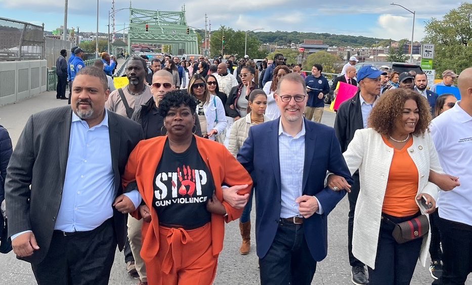 | | Walk the Bridge Against Violence | | Last Sunday, DA Clark and BXDA staff joined elected officials, clergy and residents of the Bronx and Northern Manhattan in a march across the 207th Street Bridge, to show support for the communities on both sides of the span which are enduring a surge in shootings. It was organized by Bronx Assembly Member Yudelka Tapia and Manhattan Assembly Member Manny de Los Santos. The event was held at the end of Hispanic Heritage Month to highlight that many of the victims of gun violence are from the Hispanic community. | |