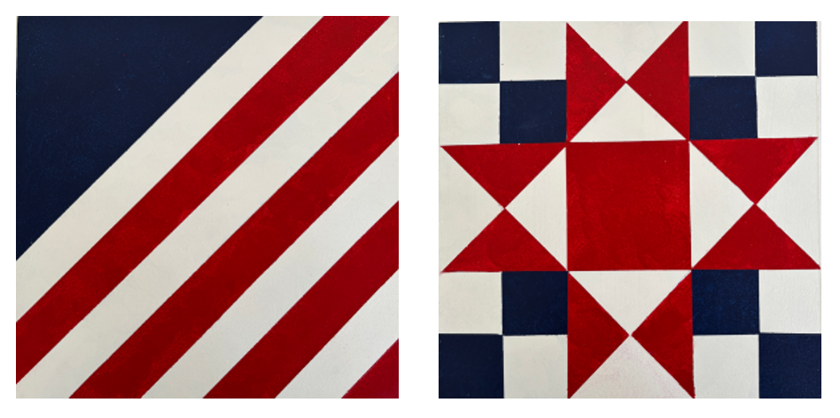 A barn quilts is a piece of wood or other material painted to look like a large quilt block for indoor or outdoor use. Join the fun of creating your very own 12 x 12 inch patriotic barn quilt to take home with you just in time for Memorial Day and 4th of July! Choose from one of two designs.