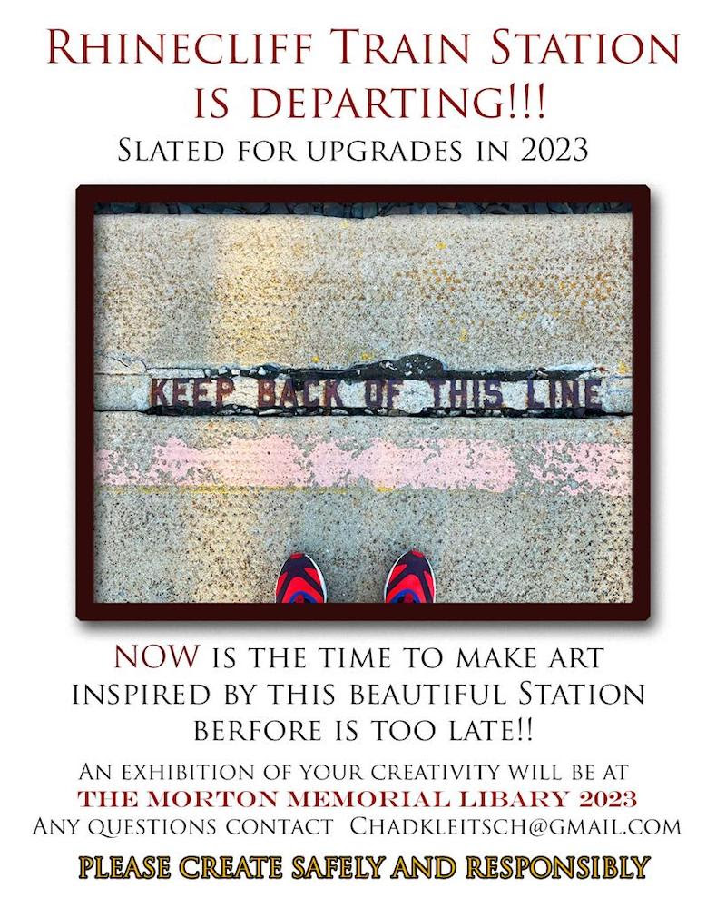 Call for submissions: artworks inspired by the Rhinecliff Train Station, to be exhibited at Morton Library, Rhinecliff, later in 2023. Contact Chadkleitsch@gmail.com to submit a piece.