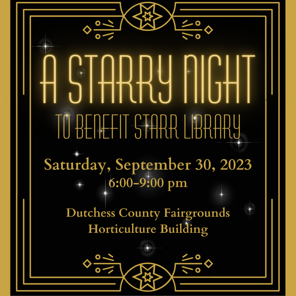 “A Starry Night,” celebrating 160 Years of Starr Library. Tickets are $150, or $200 at the door; sponsorships also available. Tickets and sponsorship information at starrlibrary-bloom.kindful.com or at starrlibrary.org. At the Fairgrounds Horticulture Building, 6550 Spring Brook Ave. (Rte. 9), Rhinebeck.
