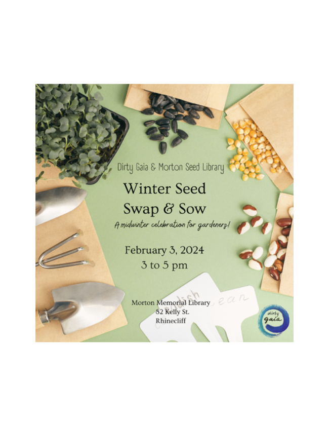 Winter Seed Swap & Sow, sponsored by Dirty Gaia and Morton Seed Library. At the library, 82 Kelly St., Rhinecliff.