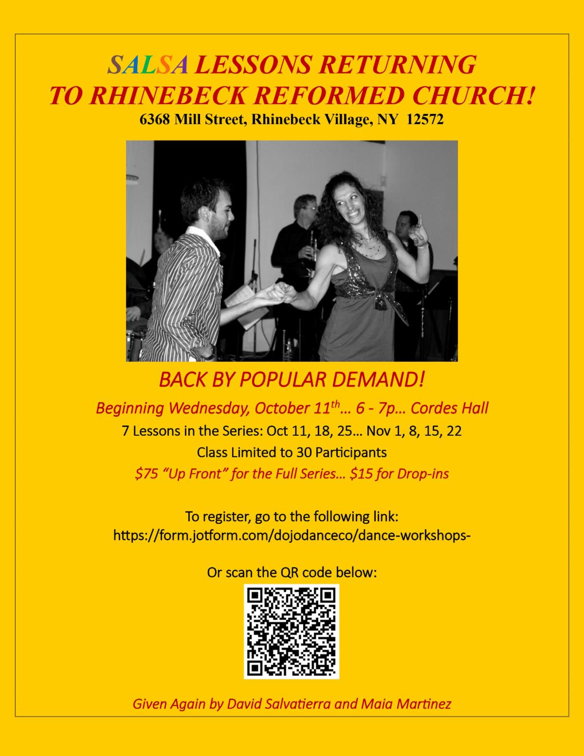 Salsa Lessons are back by popular demand! Class limited to