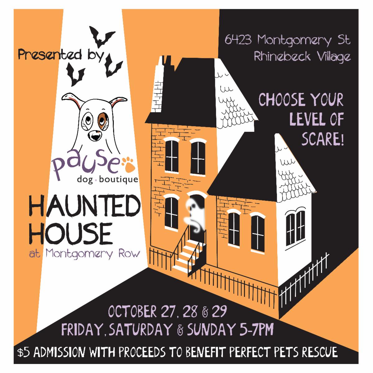 Haunted House. “Choose your level of scare!” At the Pause Dog Boutique. $5 admission, to benefit Perfect Pets Rescue. At the boutique, 6423 Montgomery St. (Rte. 9), Rhinebeck.
