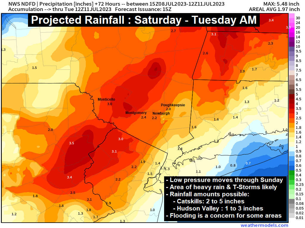 While Rhinebeck and the immediate area got drenched, the epicenter of the storm struck West Point, in Orange County, which received about eight inches of rain as of Sunday night. In addition, rail service was completely halted on Sunday and remained so throughout Monday for both Amtrak and Metro-North between Poughkeepsie and Croton, due to severe flooding on the tracks. According to reporting from The New York Times, one NYC-bound Amtrak train was headed into Poughkeepsie from Rhinecliff on Sunday night when it was stopped due to flooding on the southbound track, and then reversed back to Rhinecliff, where passengers were left to largely fend for themselves. Countless passengers were stranded throughout Dutchess County, unable to return to NYC or get to other intended destinations. But stranded passengers were not the worst of the day's news: many people in Putnam, Orange and Westchester Counties had to contend with severe flooding, property damage, and some were even put in dire situations where they needed rescuing (one person lost their life).