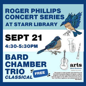 Bard Chamber Music Trio, part of the Roger Phillips Concert Series. FREE. In the main reading room at Starr Library, Rhinebeck.