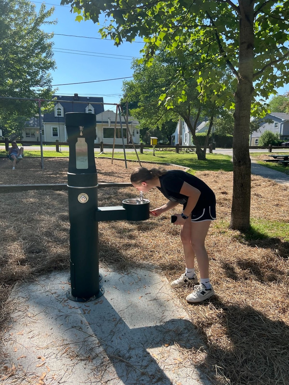 The fountain features three water delivery systems: a conventional fountain, a station for refilling water bottles, and even a refillable dog water bowl just a few inches off the ground. This project was recently dedicated with a ribbon cutting attended by Frischknecht and Village Mayor Gary Bassett – just in time for warm weather. Surfing on the success of this water win, the students are now working on plans for a similar fountain in a location close to Village Hall.