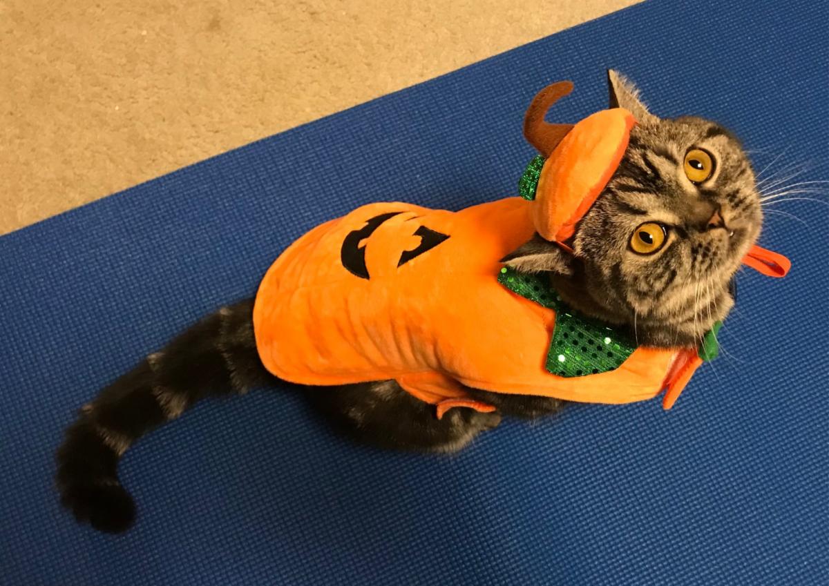 Emma the cat (not a natural born pumpkin) is a British Shorthair who lives in Ulster County and is a big fan of Halloween.