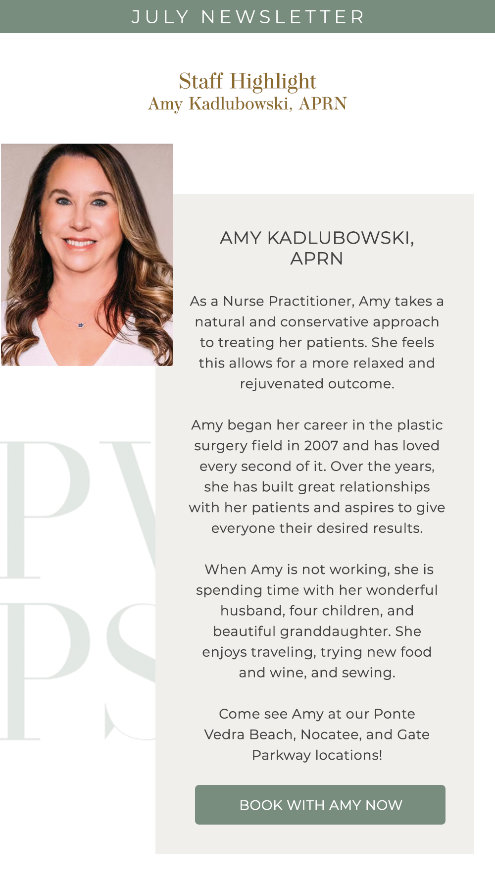 At Ponte Vedra Plastic Surgery, we strive for excellence in the care we provide and in the results that we achieve. Offering numerous cosmetic and reconstructive surgeries, along with nonsurgical procedures at multiple locations, our outstanding surgeons and staff are able to provide superior results. Since we truly value each patient, we attend ongoing training to provide the most advanced procedures in our state-of-the-art facilities. In addition, our main location features a fully licensed and accredited ambulatory surgery center. Our ultimate goal is to provide Northeast Florida with world-class surgery in a safe and welcoming environment. LEARN MORE>