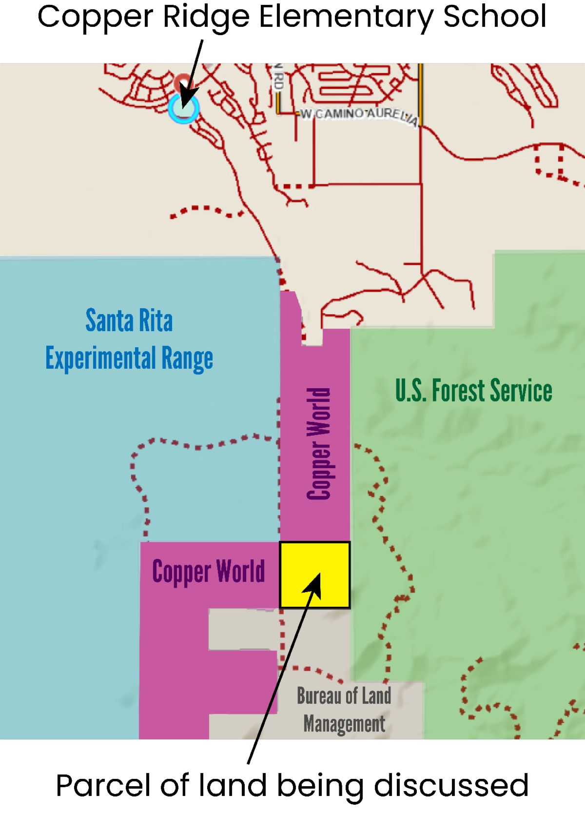 The sale of this land would allow Copper World to access approximately 500 acres of land it already owns, where it will dump mine tailings adjacent to Corona de Tucson neighborhoods and schools.
