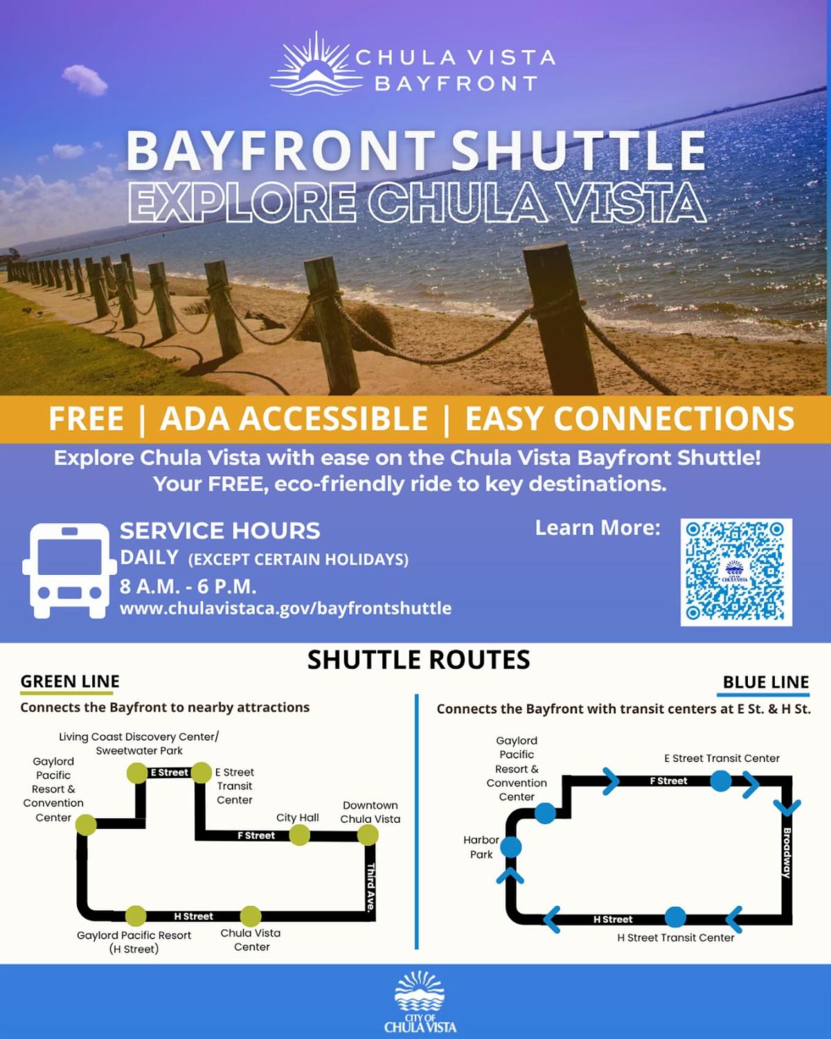 Visit chulavistaca.gov/bayfrontshuttle for more information.