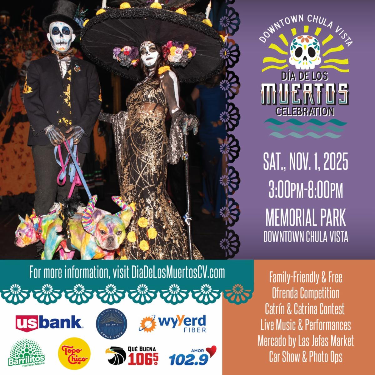 Celebrate life and community in Downtown Chula Vista on Saturday, November 1st from 3:00 to 8:00PM at the 5th Annual Día de los Muertos Celebration.