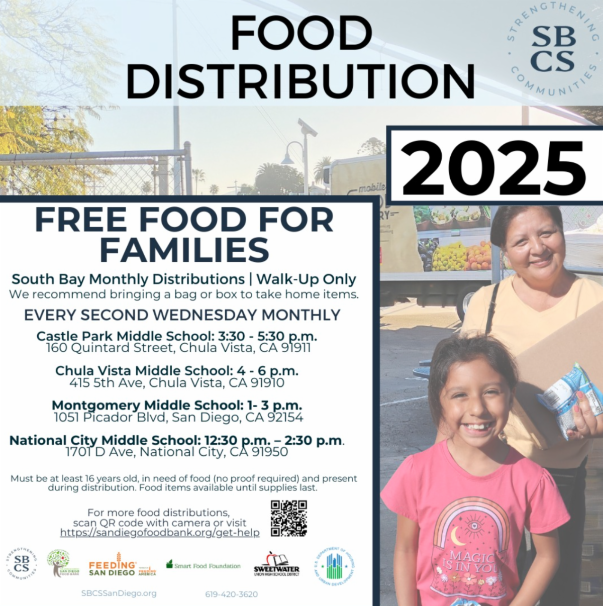 SBCS offers monthly food distribution for South Bay Residents on the second Wednesday of the month! See the flyer for all dates and times. Find more food distributions here.