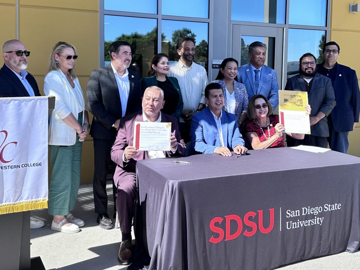 | Stay up-to-date with the Chula Vista Library on Facebook, Instagram, and the City website! | | SDSU & Southwestern College Join New Partnership | | Last week, Southwestern College and San Diego State University signed a certificate of agreement today to bring SDSU's Industrial/Organizational Psychology baccalaureate degree programs to the SWC campus. This partnership will make higher education more accessible and broaden the career opportunities for South Bay students. This allows local students to complete a four-year SDSU degree without relocating or commuting. Learn more. | | |