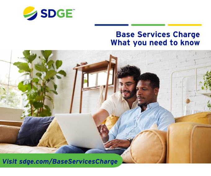 New Bill Structure: Starting this fall, SDG&E will introduce a new line item called the Base Services Charge on your electric bill. It’s not an added fee, but a restructuring of existing charges. Get details at sdge.com/BaseServicesCharge.