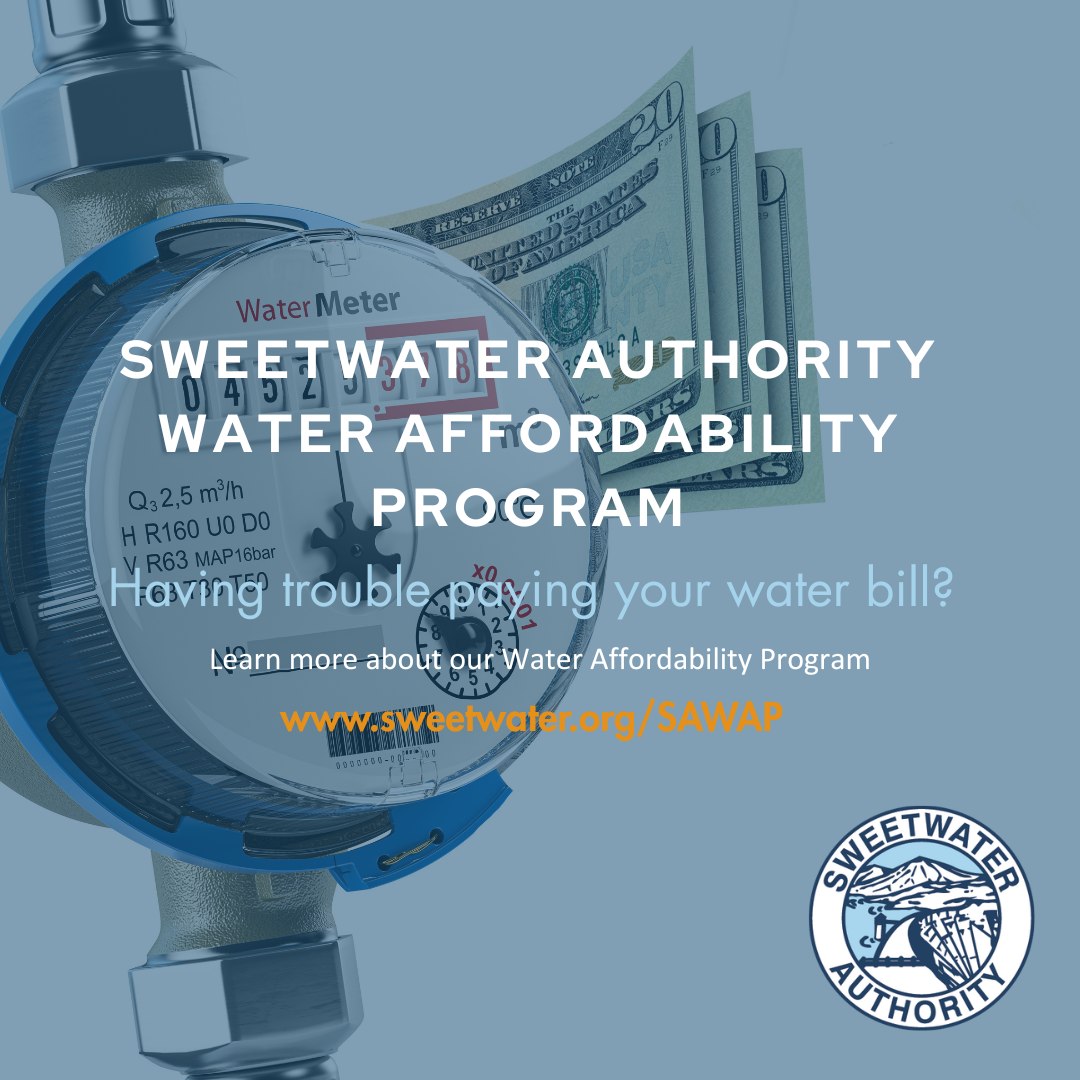 The Sweetwater Authority’s Water Affordability Program allows qualifying Sweetwater Authority customers to be eligible for low-income bill assistance on the water bill at their primary residence. Customers applying for assistance must be listed as the primary account holder. See eligibility requirements.