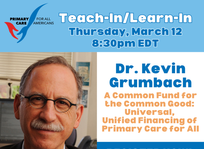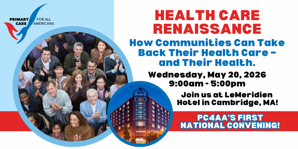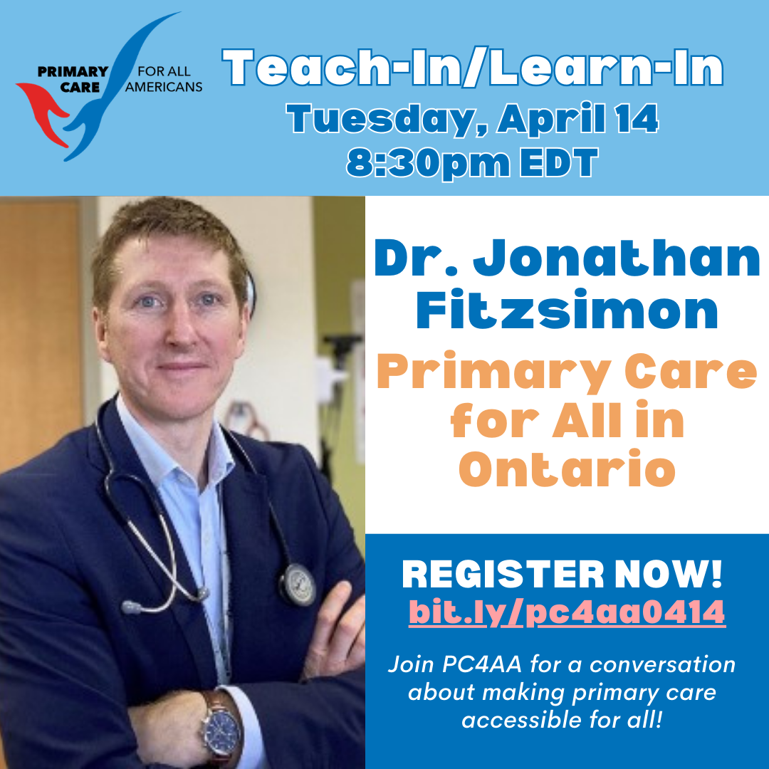 For inspiration, PC4AA is looking to Ontario! Please register for our April 14th Teach-In/Learn-In with Dr. Jonathan Fitzsimon about the impact of providing primary care to everyone in Ontario. We also look forward to learning with him at the National Convening in Cambridge, MA May 20th - stay tuned for registration! And finally, a warm welcome to all joining for the first time from conversations at the MA Academy of Family Physicians meeting this past weekend – we’re so glad you’re here.