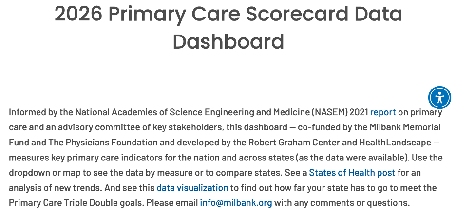 Despite these benefits, the United States invests remarkably little in primary care, as Dr. Kevin Grumbach discussed in last week’s Teach-In/Learn-In. In 2022, less than 5% of total health care spending went toward primary care, hampering the work, weakening the workforce, and leaving tens of millions without a primary care relationship. You can check your state’s score at the Milbank Memorial Fund’s 2026 Primary Care Scorecard Data Dashboard.