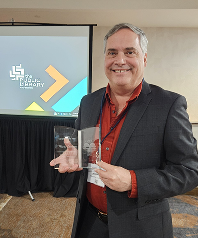 The University of New Mexico proudly celebrates Mark Emmons, professor and dean of the College of University Libraries and Learning Sciences, who has been named the 2025 New Mexico Academic Librarian of the Year by the New Mexico Consortium of Academic Libraries (NMCAL). The honor recognizes Dean Emmons’s leadership, innovation, and lasting contributions to academic librarianship statewide. A member of the UNM community since 1998, he has held multiple leadership roles within the College and was appointed dean earlier this semester. Colleagues celebrated his decades-long dedication to scholarship, mentorship, and service during the New Mexico Library Association’s annual conference in October. Congratulations, Dean Emmons, on this well-deserved recognition!