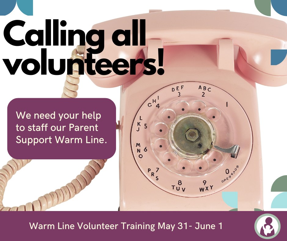 Every day, volunteers provide a lifeline to parents who are struggling and feeling alone. Talking to another parent who has been through it reduces the isolation and stigma that many new parents feel. Receiving and providing peer support is unique and powerful for both the volunteer and parent! That is why we need you!