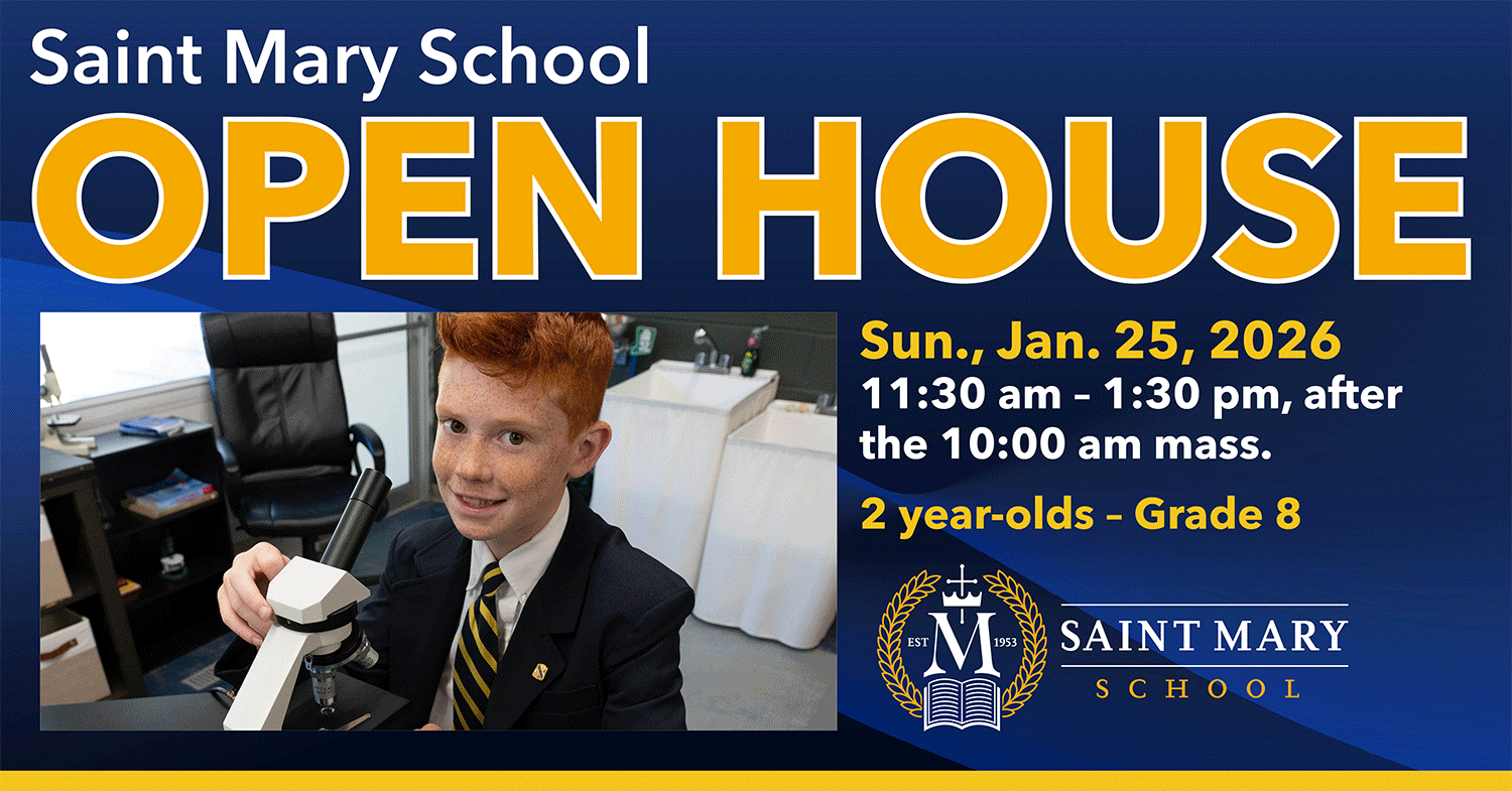 The coming year should be one full of activity, achievement, and success for the students and staff of Saint Mary School. The next few weeks you will see us celebrate Catholic Schools Week Mass and Winter Open House on 1/25/26, Catholic Schools Week from 1/25-1/30, and the Polar Plunge for Catholic Education on 2/1. This is just the beginning of what promises to be very busy and exciting Winter and Spring seasons for all at SMS! Feel free to join us or invite friends to attend any or all these events as we love to share our experiences with alums and the parish at large. Finally, sharing our weekly school masses with the parishioners, alums, and community of St. Mary has, and will continue to, bring our faithful community together in the worship of our Lord Jesus Christ and celebration of the Eucharist.