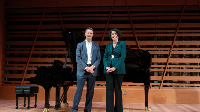 Many generous donors rose to the challenge with gifts to name a piano in honor of a family member, friend, or mentor, including the family of USM Foundation Board Chairman, Steve deCastro. A $300,000 gift from the Edson deCastro 2007 Trust has named a Steinway D piano with Spirio technology for Steve's late father and stepmother, Edson and Eileen DeCastro. The DeCastro piano will take center stage in the new Performance Hall. An additional $200,000 from the Trust will name a music classroom in the Crewe Center.