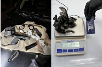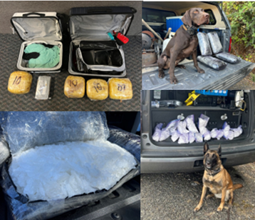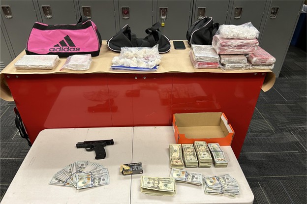 In August 2025, the Portland Police Bureau HIDTA Interdiction Team (HIT) supported the Narcotics and Organized Crime (NOC) unit in an overdose investigation that led to a significant drug seizure. After NOC identified and arrested the initial suspect involved in the overdose—referred to as a “level one” dealer—HIT members quickly acted to identify and apprehend higher-level individuals in the distribution chain.